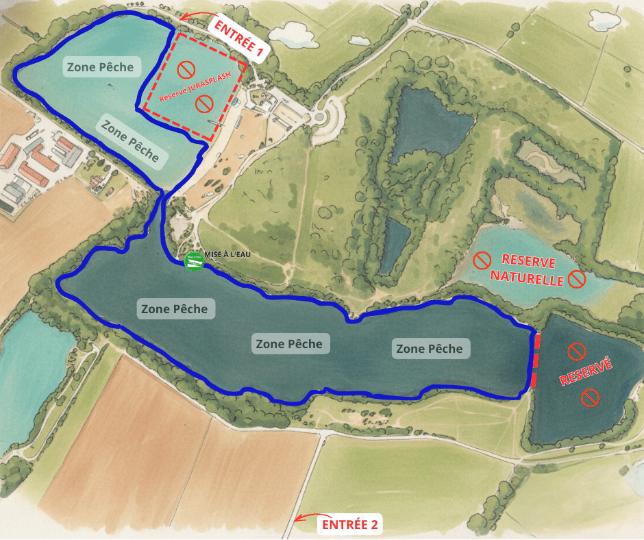 Pour garantir un confort de pêche optimal, réduire la pression sur les poissons et préserver le calme du lieu, nous limitons l’accès à 8 pêcheurs de carnassiers simultanément sur l’ensemble du lac.